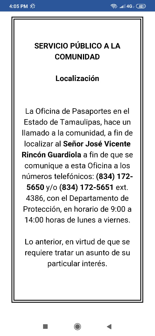 MATAMOROS La Oficina de la Secretaría de Relaciones Exteriores en Matamoros solicita su apoyo para difundir la citada información 👇