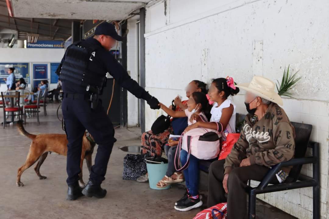 Binomios caninos de la Guardia Estatal mantienen vigilancia en Central de Autobuses
