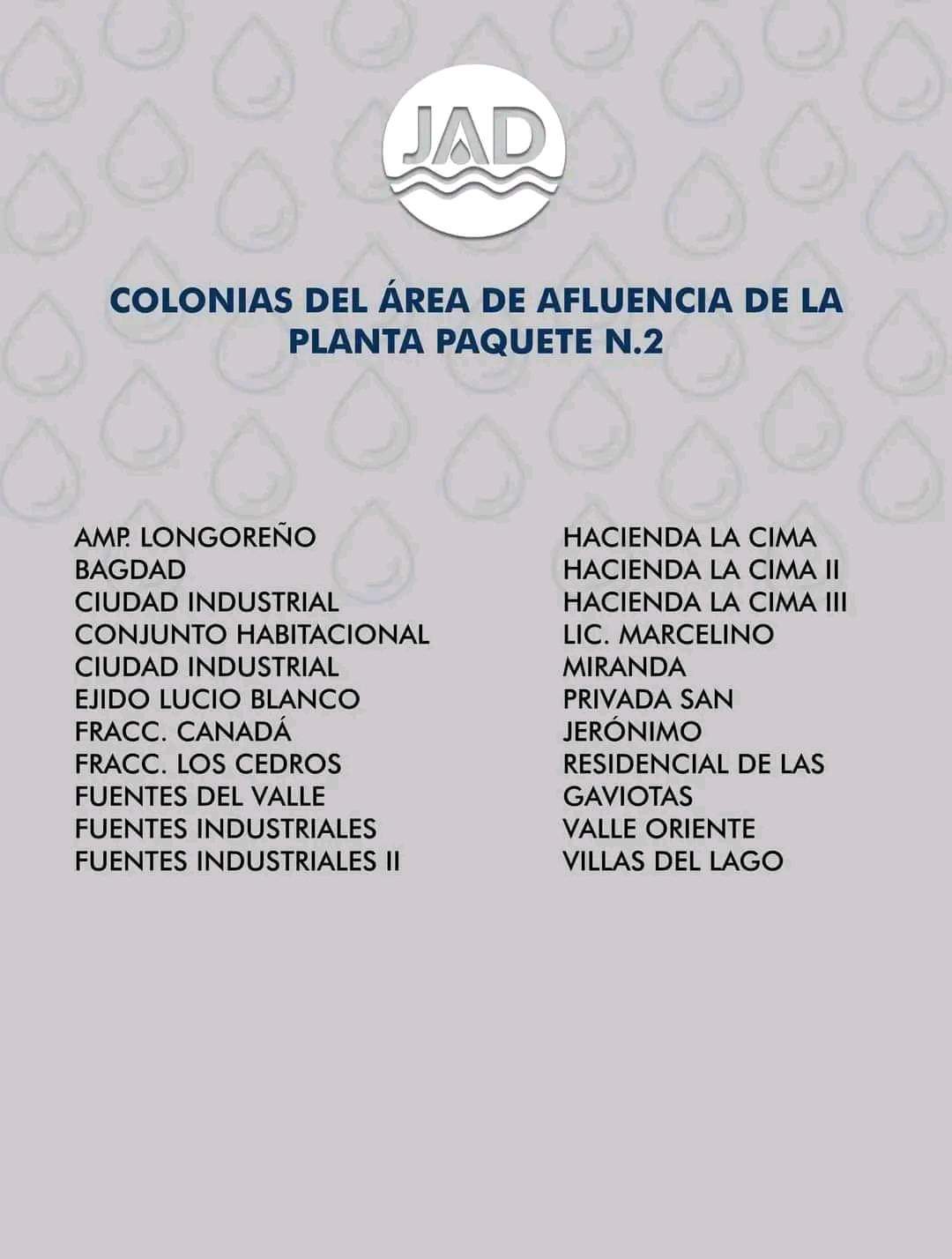 Se dará mantenimiento preventivo al sistema precipitador y floculador, por lo cual se realizará la interrupción del servicio en la Planta Paquete 2, el Domingo 10 de Diciembre desde las 10:00 a.m. a las 5:00 de la tarde.