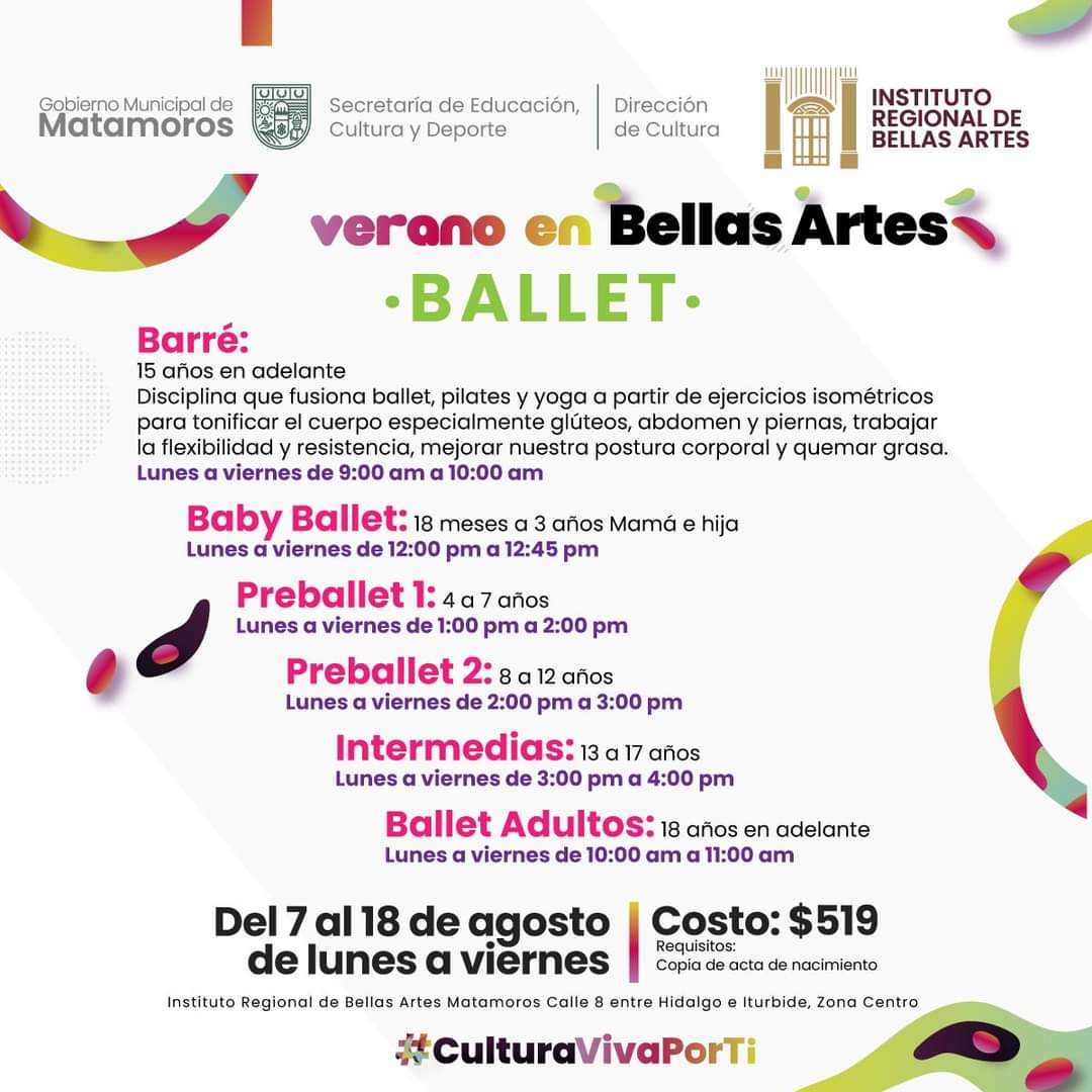 El Gobierno Municipal de Matamoros a través de la Secretaría de Educación Cultura y Deporte y el Instituto Regional de Bellas Artes te invitan a los Talleres de VERANO EN BELLAS ARTES.¡Inscríbete ya!