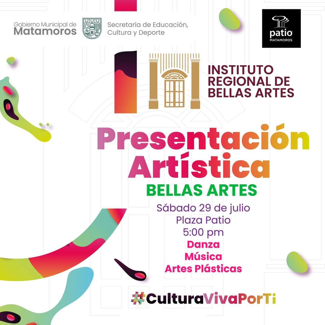El Gobierno Municipal de Matamoros a través de la Secretaría de Educación Cultura y Deporte y el Instituto Regional de Bellas Artes te invita: