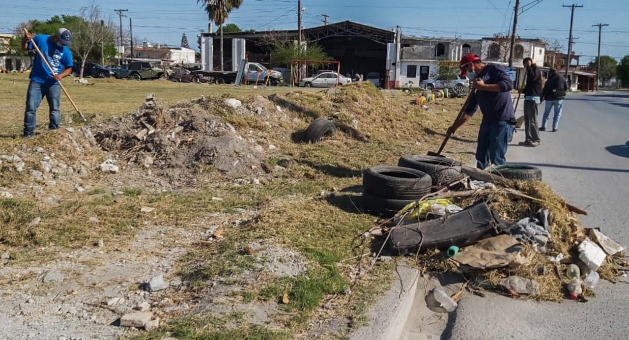 Continúan dando gobierno municipal atención a áreas verdes en colonias de Matamoros