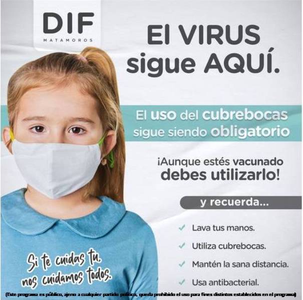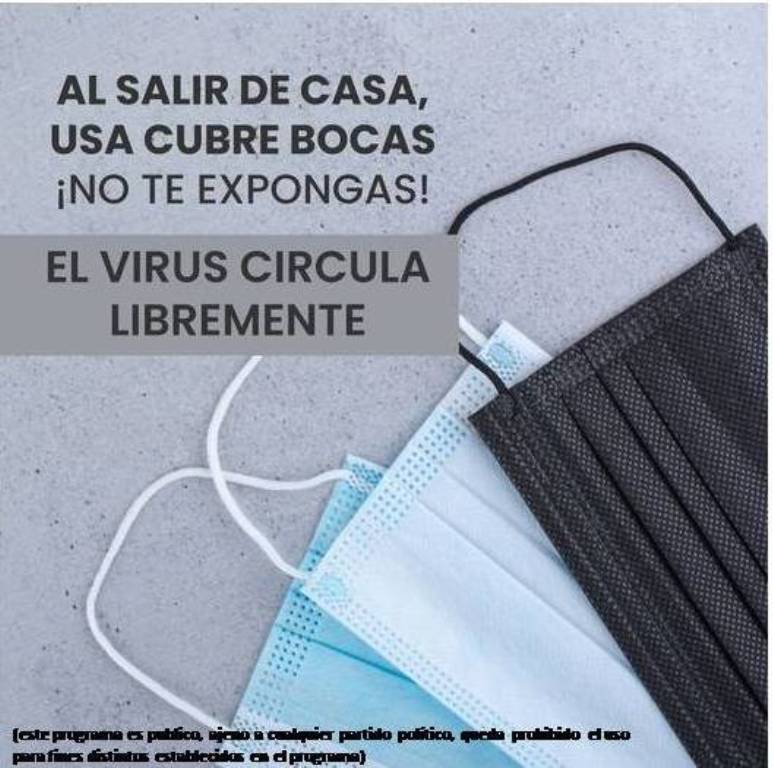 La pandemia continúa y es importante que no bajemos la guardia. Recuerda usar tu cubrebocas o mascarilla al salir de casa. ¡No te expongas ni expongas la salud de los que amas! «Este Programa es Público, ajeno a cualquier partido politico. Queda prohibido el uso para fines distintos a los establecidos en el programa».