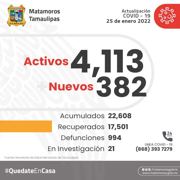 La secretaria de salud municipal informa que actualmente Hay activos 3,918 casos de covid-19 344 casos nuevos Acumulados 23,334 Recuperados 18,417 Defunciones 999 En investigación 14 quedateencasa «Este Programa es Público, ajeno a cualquier partido politico. Queda prohibido el uso para fines distintos a los establecidos en el programa».