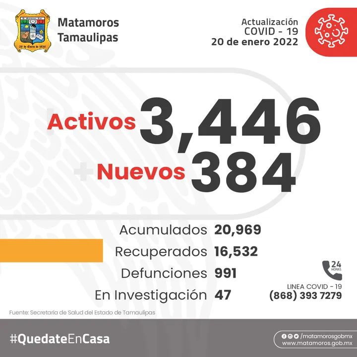 La secretaria de salud municipal informa que actualmenteHay activos 3,446 casos de covid-19384 casos nuevosAcumulados 20969Recuperados 16,532Defunciones 991En investigación 47#quedateencasa