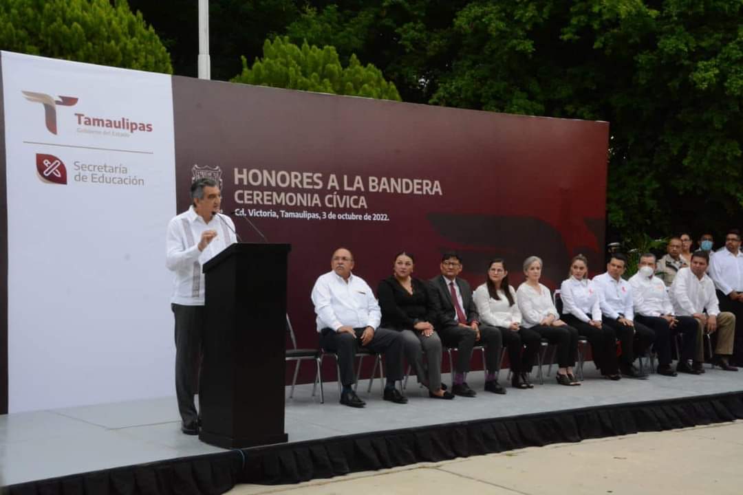 Cd. Victoria, Tamaulipas, 3 de octubre de 2022.- El gobernador Américo Villarreal Anaya presidió la primera ceremonia cívica de honores a la bandera y ante la estructura educativa del Estado, llamó a unir esfuerzos para combatir el rezago en el sector y que en Tamaulipas la educación sea verdaderamente transformadora. «Haremos un gran esfuerzo paraSigueSigue leyendo «Se atenderá el rezagoeducativo: Américo»
